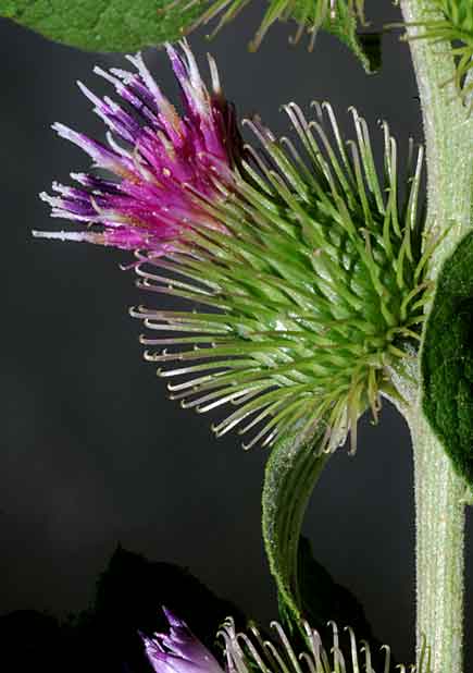 Nel 1948, l’ingegnere svizzero George de Mestral (1907-1990) inventò il velcro: accorgendosi che i fiori di bardana (Arctium Lappa) si attaccavano ai suoi pantaloni. Guardandoli al microscopio si accorse che avevano una forma ad uncino, allora ha provato a riprodurre questi microscopici ganci con fili di nailon e ha visto che potevano essere applicati su un tessuto e che così si potevano agganciare e tenere uniti due pezzi di tessuto senza spilli o bottoni. Nel 1955 negli Stati uniti ha brevettato la sua invenzione.