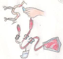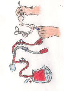 clamp vicina alla sacca e tagliare il tubo. Rimuovere gli aghi dalla