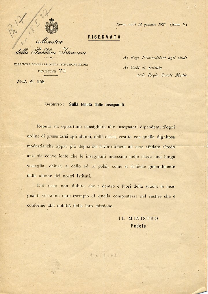 spontaneamente il grembiule oltre il ginocchio" (1926-27); "ritegnose sì ma