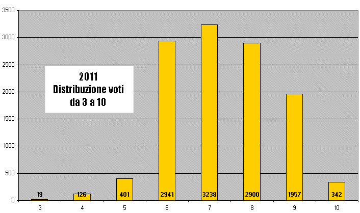Complessivamente ci sono state 11378 valutazioni sufficienti e 546 insufficienti.