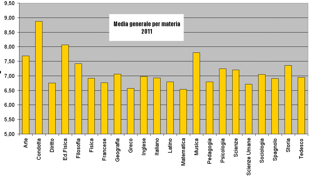 La media generale dei voti di tutta la scuola è di 7,32 per le femmine e di 7,29 per i maschi: solo 0,03 di differenza contro lo 0,10 dello scorso anno.