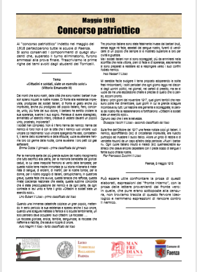 Qui nei sereni studi....Il Liceo Torricelli nella Grande GuerraUna mostra: aprile-giugno 2018