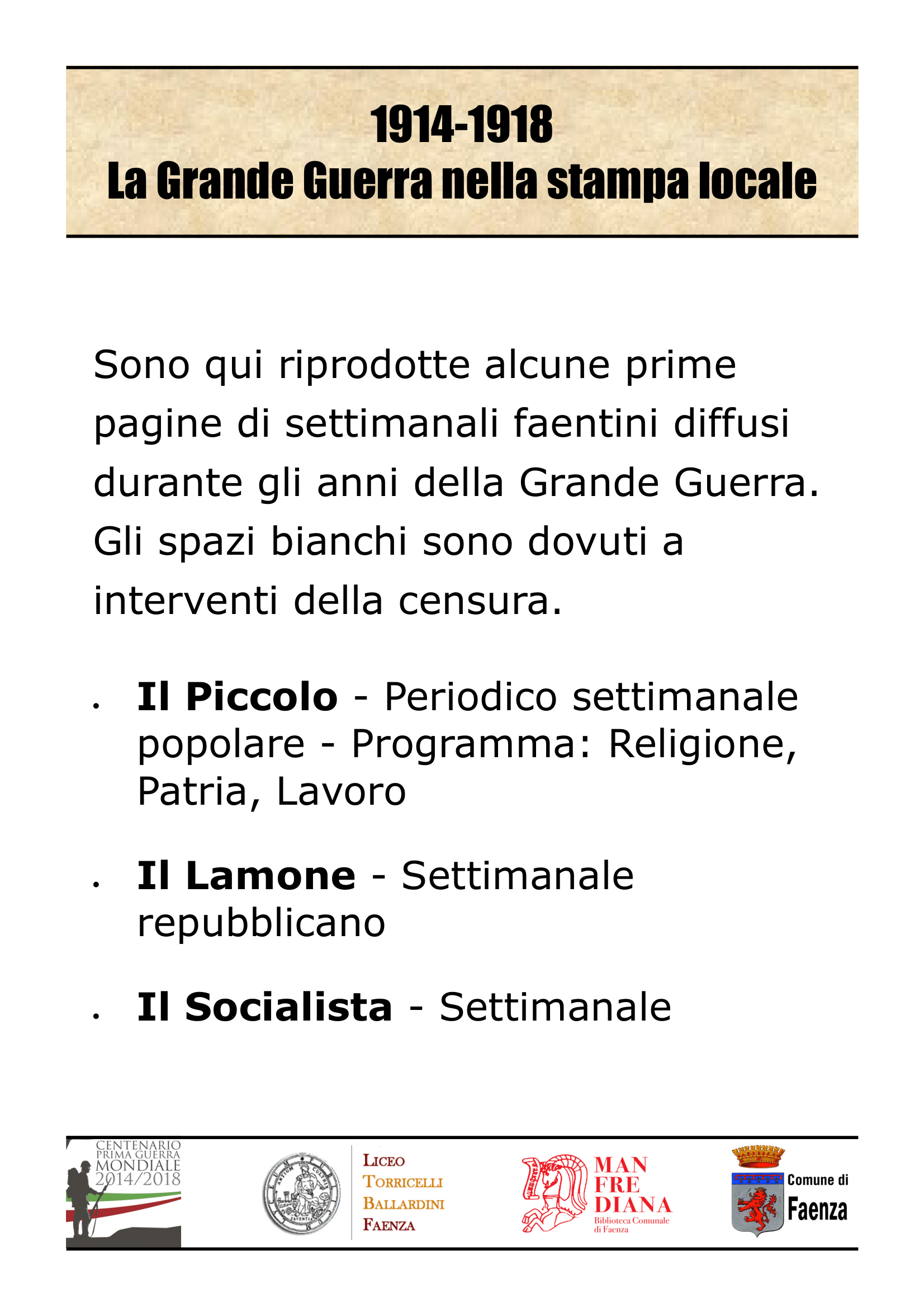 Qui nei sereni studi....Il Liceo Torricelli nella Grande GuerraUna mostra: aprile-giugno 2018