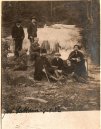 Gennaio 1912. Verso il monte Falterona. Da sinistra: Diego Babini, Dino Campana, don Francesco Bosi, avv. Giacomo Mazzotti, Achille Cattani, Lamberto Caffarelli. Foto scattata da don Stefano Bosi.