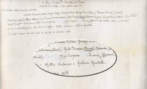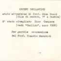 Annotazione dal professor Gino Docci sul verso della foto di classe, con ingrandimento di un perticolare.