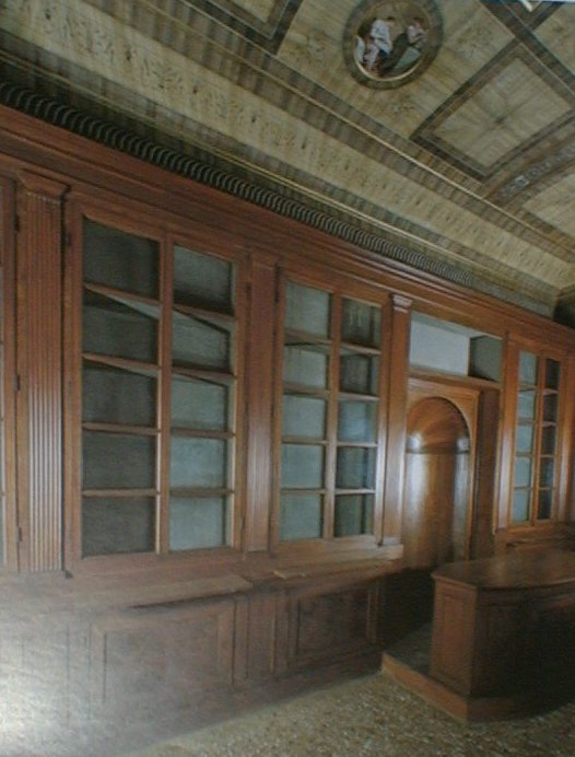 davanti ad una absidiola poco profonda, ritagliata nella libreria, rivestita sempre in
