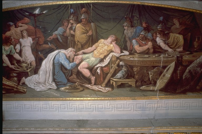 Galleria, raffigura Achille che piange sul corpo dellamico Patroclo e Tetide, madre