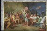 dAchille, viene a confortarlo portandogli le nuove armi forgiate da Vulcano. Nel dipinto si ritrovano molti elementi tipicamente neoclassici: spicca larmonia generale tra i personaggi, nonostante la dolorosa situazione. Lequilibrio prevale sulla sofferenza che, sì è presente, ma manifestata con toni pacati e contenuti. Lequilibrio prevale non solo nei sentimenti, ma anche nella disposizione dei personaggi: il corpo di Patroclo funge da linea di divisione tra le figure principali (Tetide ed Achille) e quelle secondarie (uomini e donne che piangono leroe morto). Unulteriore divisione tra i personaggi si ritrova nella scelta cromatica degli abiti, in quanto per le figure femminili sono stati scelti colori tenui come lazzurro, il bianco e il rosa; per le figure maschili abbiamo invece colori più forti quali il rosso e il marrone. Da notare il panneggio delle vesti che rivela le forme femminili e la notevole cura per quanto riguarda la rappresentazione della muscolatura maschile. |