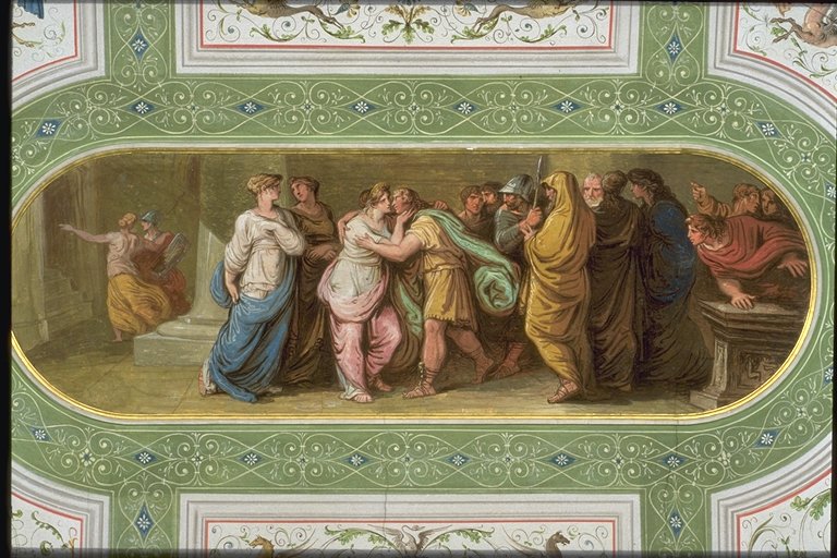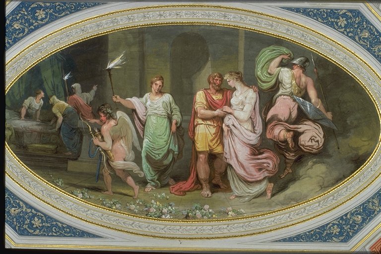 ceiling the scene of the uniting of Ulysses and Penelope is represented: they are