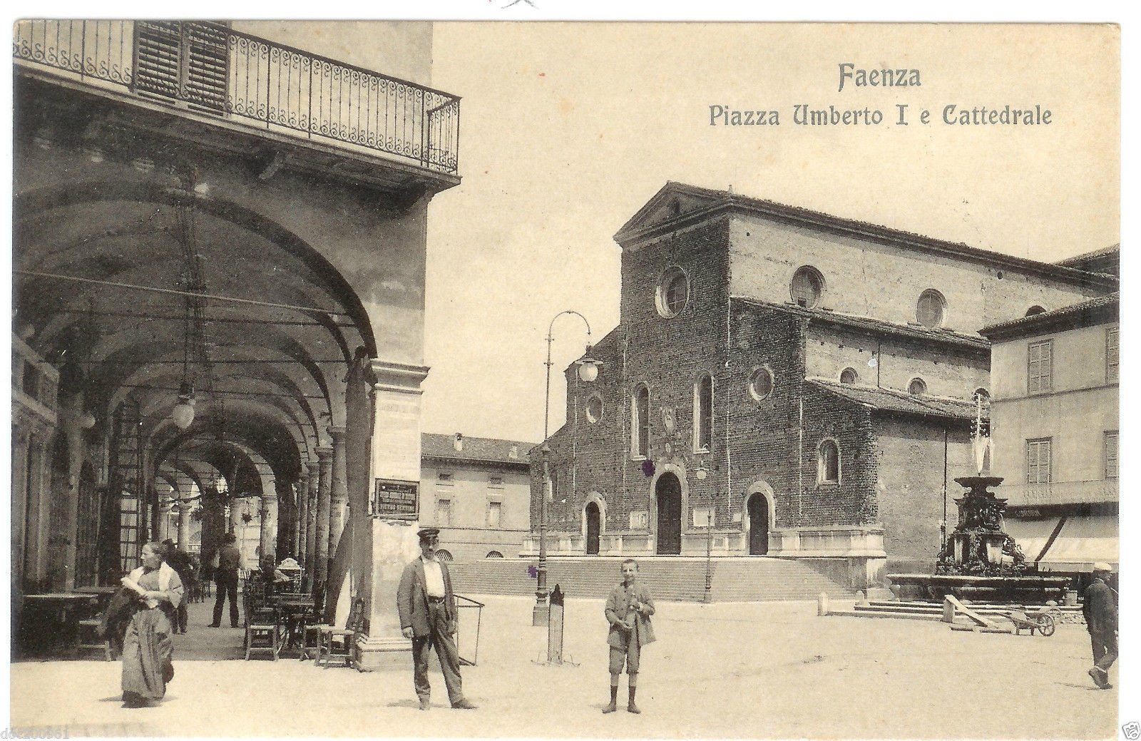 Piazza Umberto I (attuale piazza della Libertà) con Duomo, fontana e loggia "dei signori". Anno 1910 circa.