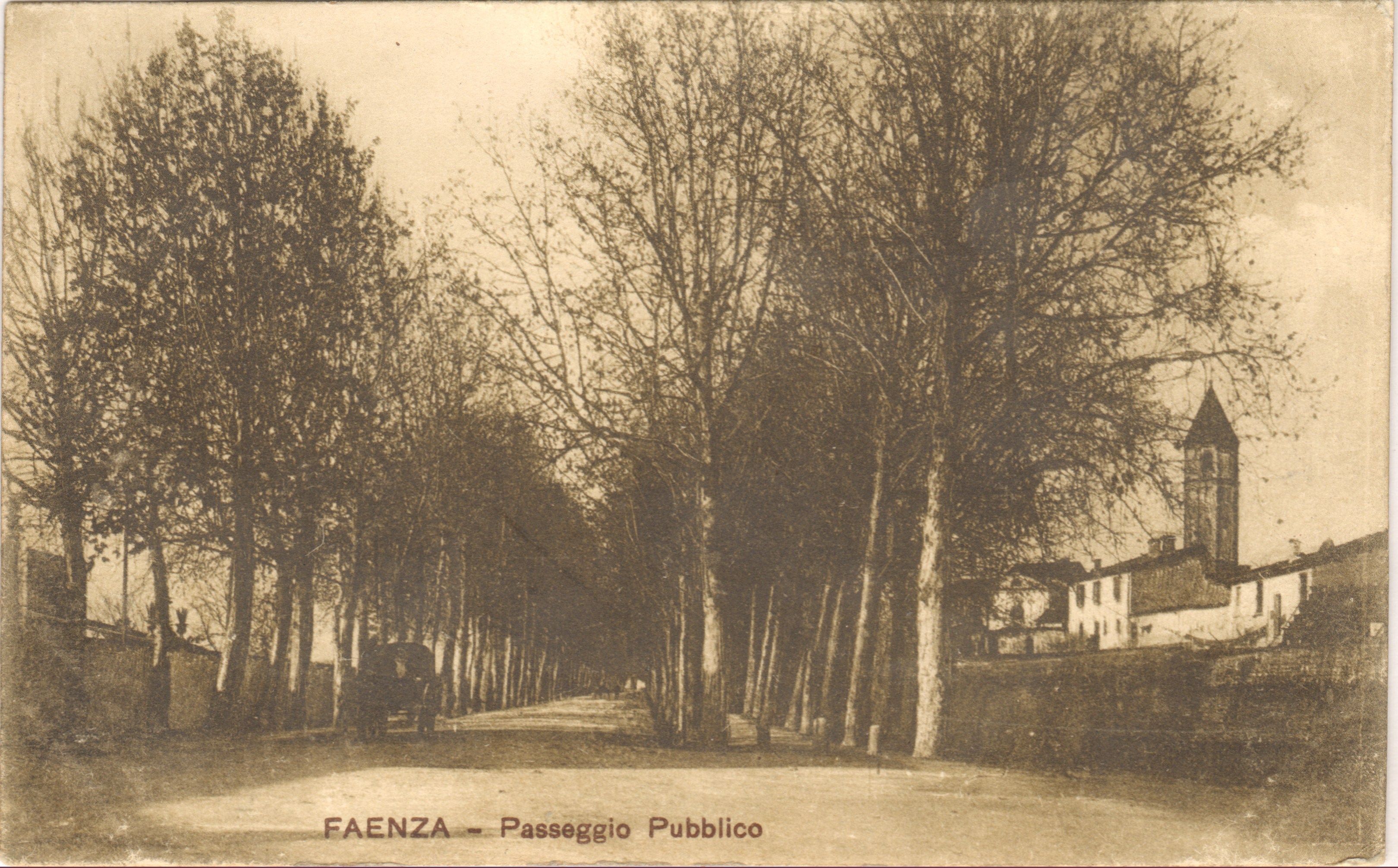 Porta Montanara, il viale Stradone, il campanile di Santa Maria ad Nives (che al tempo di Campana aveva il tetto appuntito) compongono la veduta di Faenza che si offre al viaggiatore proveniente dalla montagna. Sullo sfondo Campana proietta vicende mitiche e scenari desunti dalla grande tradizione pittorica italiana.