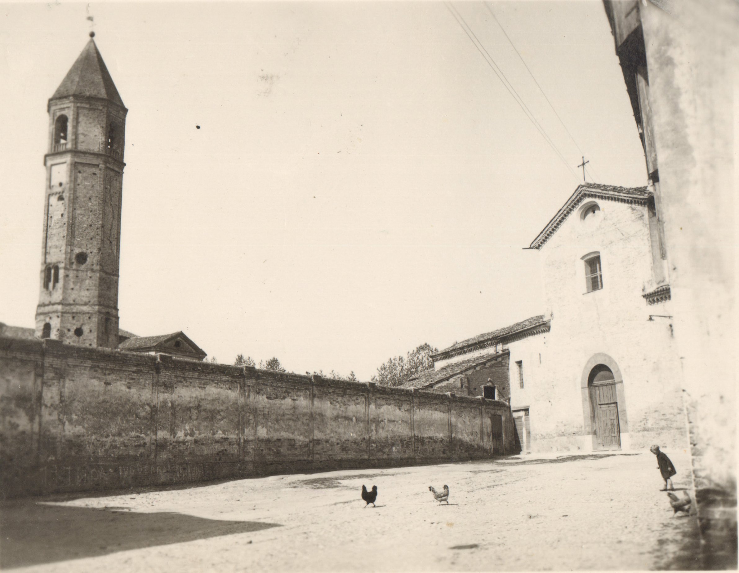 La chiesa di S.Rocco e l’omonima piazzetta dominata dalla torre barbara di S.Maria ad Nives. Anno 1930 circa.