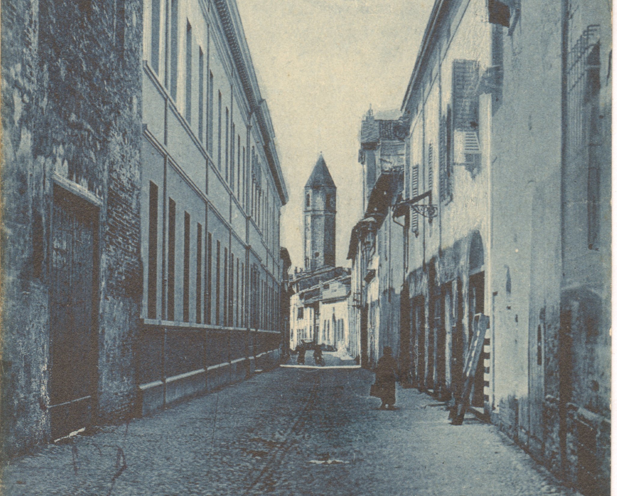 Fu scosso da una porta che si spalancò. Dei vecchi, delle forme oblique ossute e mute, si accalcavano spingendosi coi gomiti perforanti, terribili nella gran luce. Davanti alla faccia barbuta di un frate che sporgeva dal vano di una porta sostavano in un inchino trepidante servile, strisciavano via mormorando, rialzandosi poco a poco, trascinando uno ad uno le loro ombre lungo i muri rossastri e scalcinati, tutti simili ad ombra. Una donna dal passo dondolante e dal riso incosciente si univa e chiudeva il corteo.