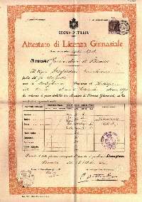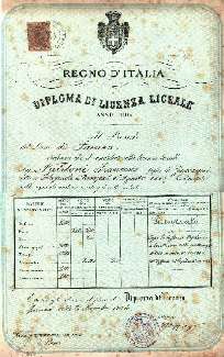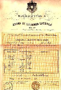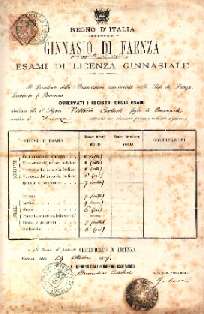 Sopra, i voti del primo diplomato del Liceo, conte Tommaso Gessi. Sotto, quelli di Dino Campana, studente in prima liceo nel 1900-1901(cliccare).