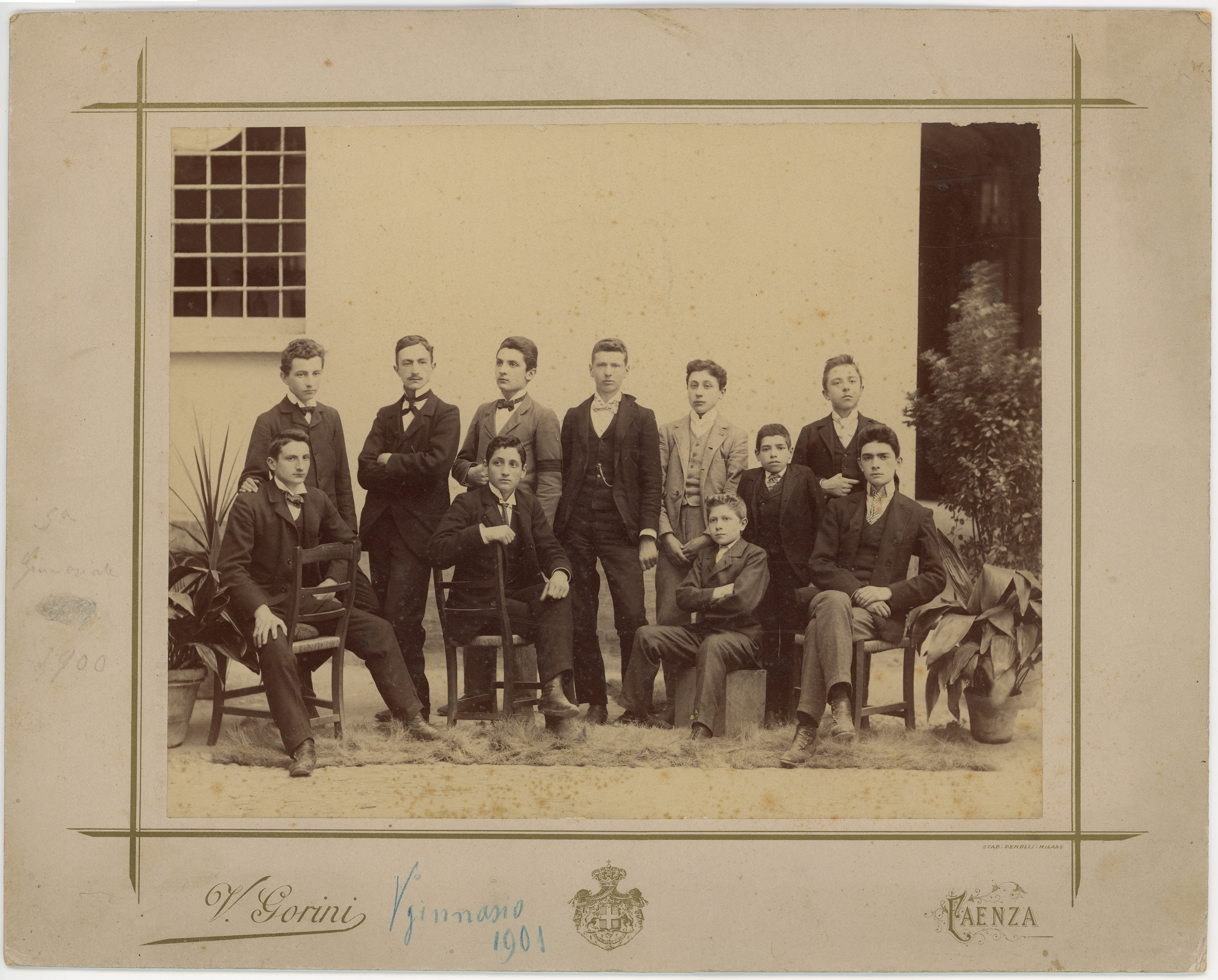 Delle due indicazioni a matita, quella sottostante è errata, mentre quella appena leggible sulla sinistra (5a ginnasiale 1900) trova conferma dal