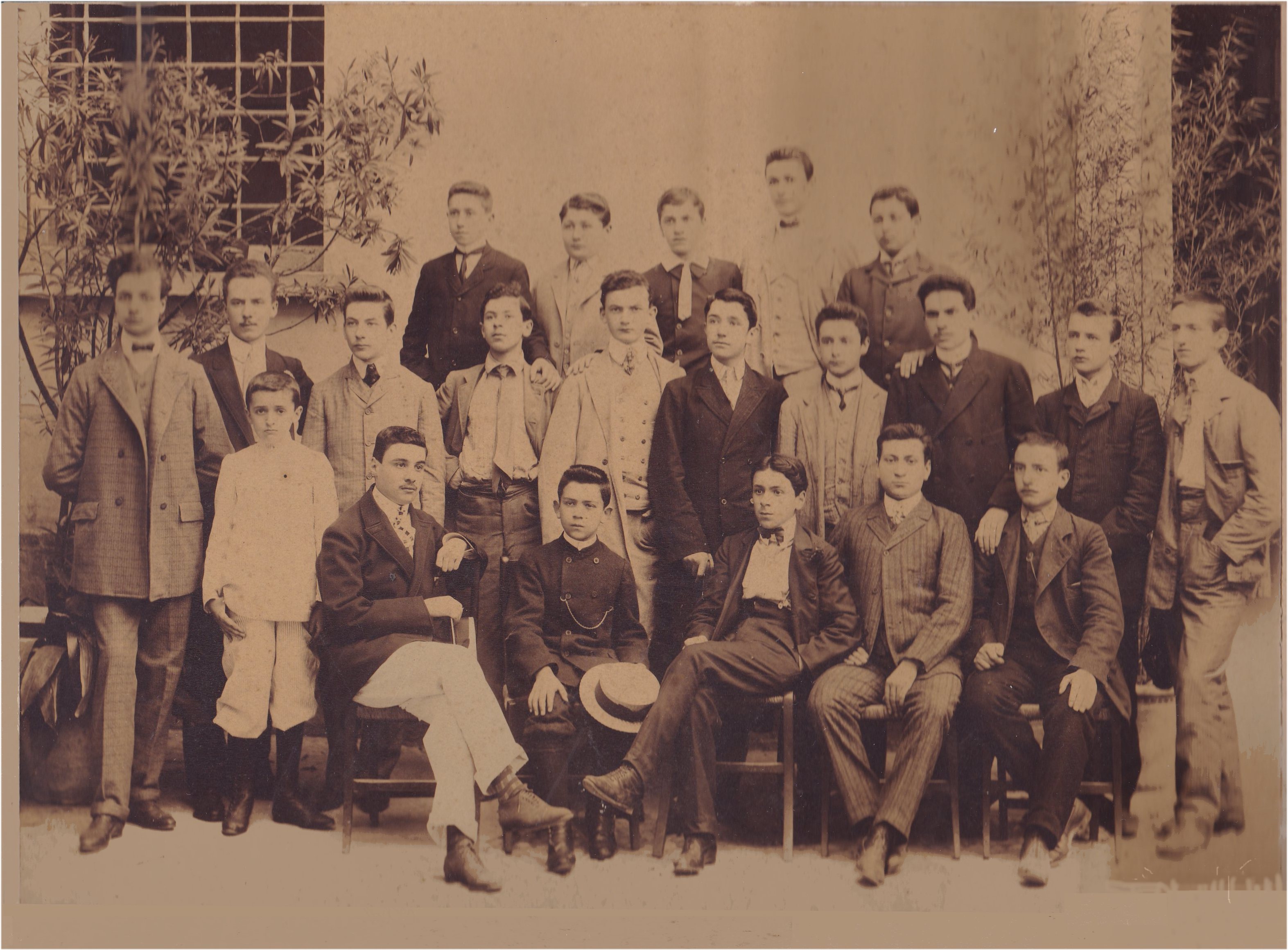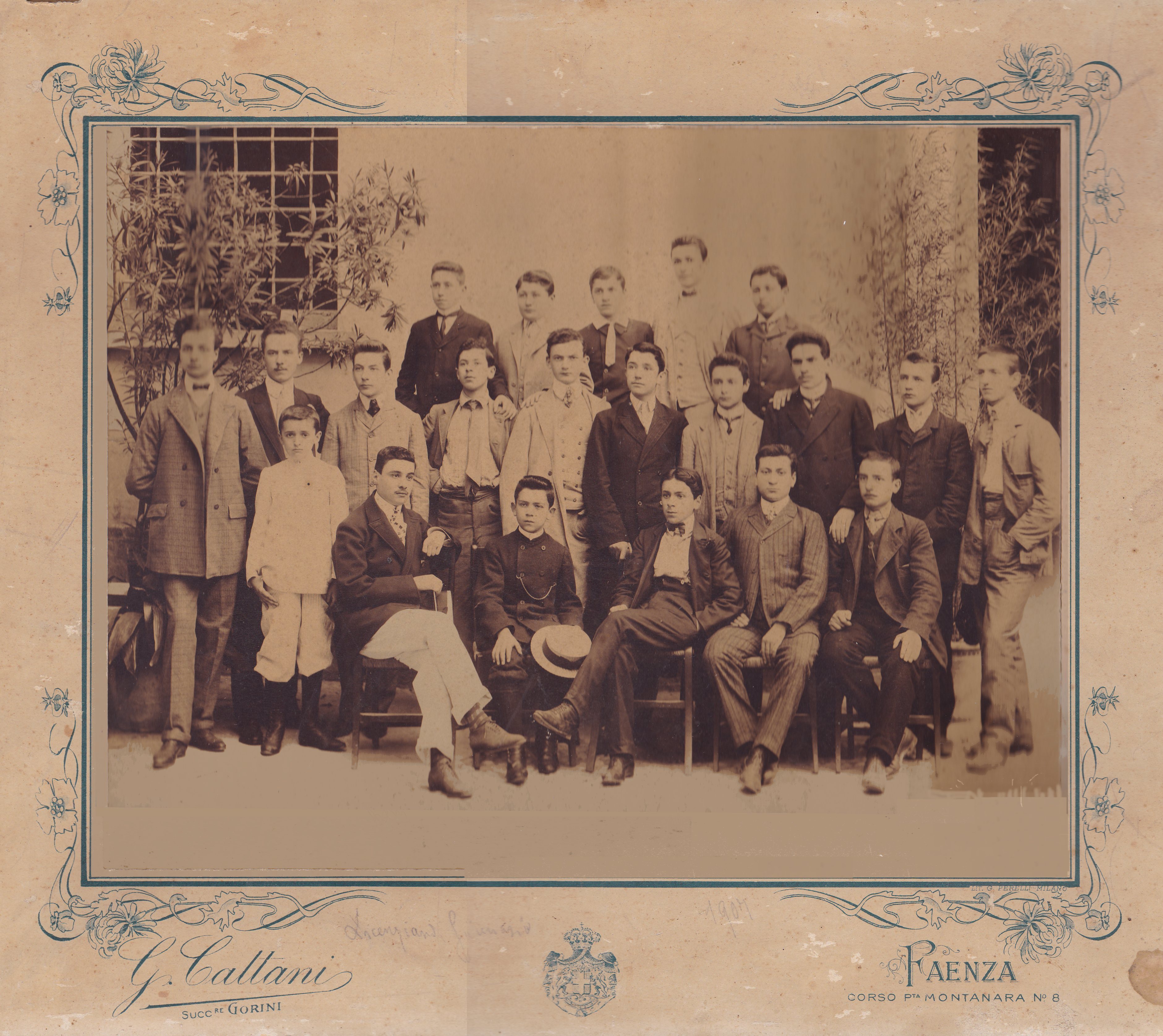 Il secondo in basso a sinistra, vestito di bianco, è Antonio Zucchini, figlio del deputato Carlo Zucchini e futuro sindaco di Faenza.