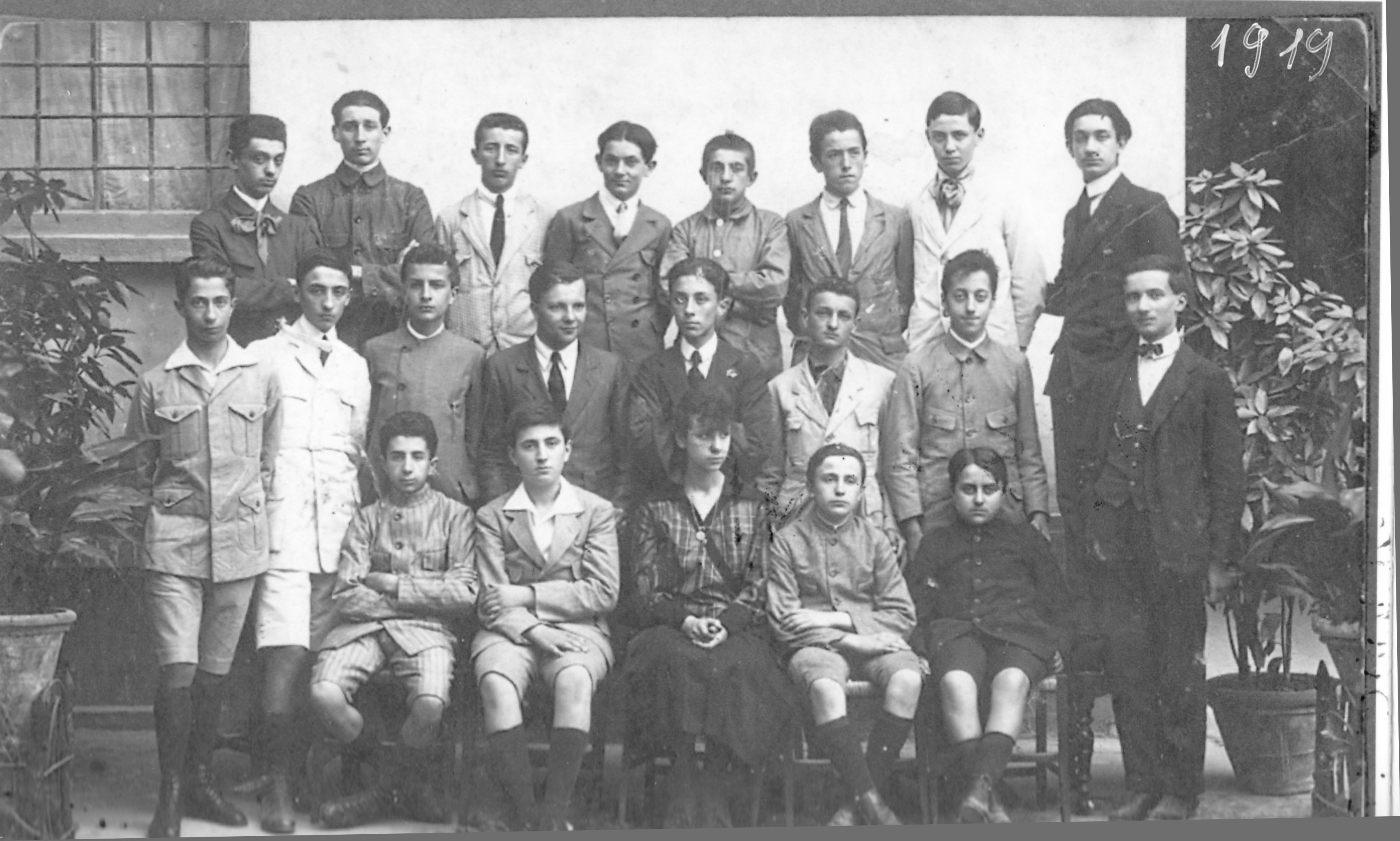 Il primo alunno in alto รจ Mario Leonida Ancarani, alias "Molecola", poi indimenticato insegnante di scienza naturali nel liceo.