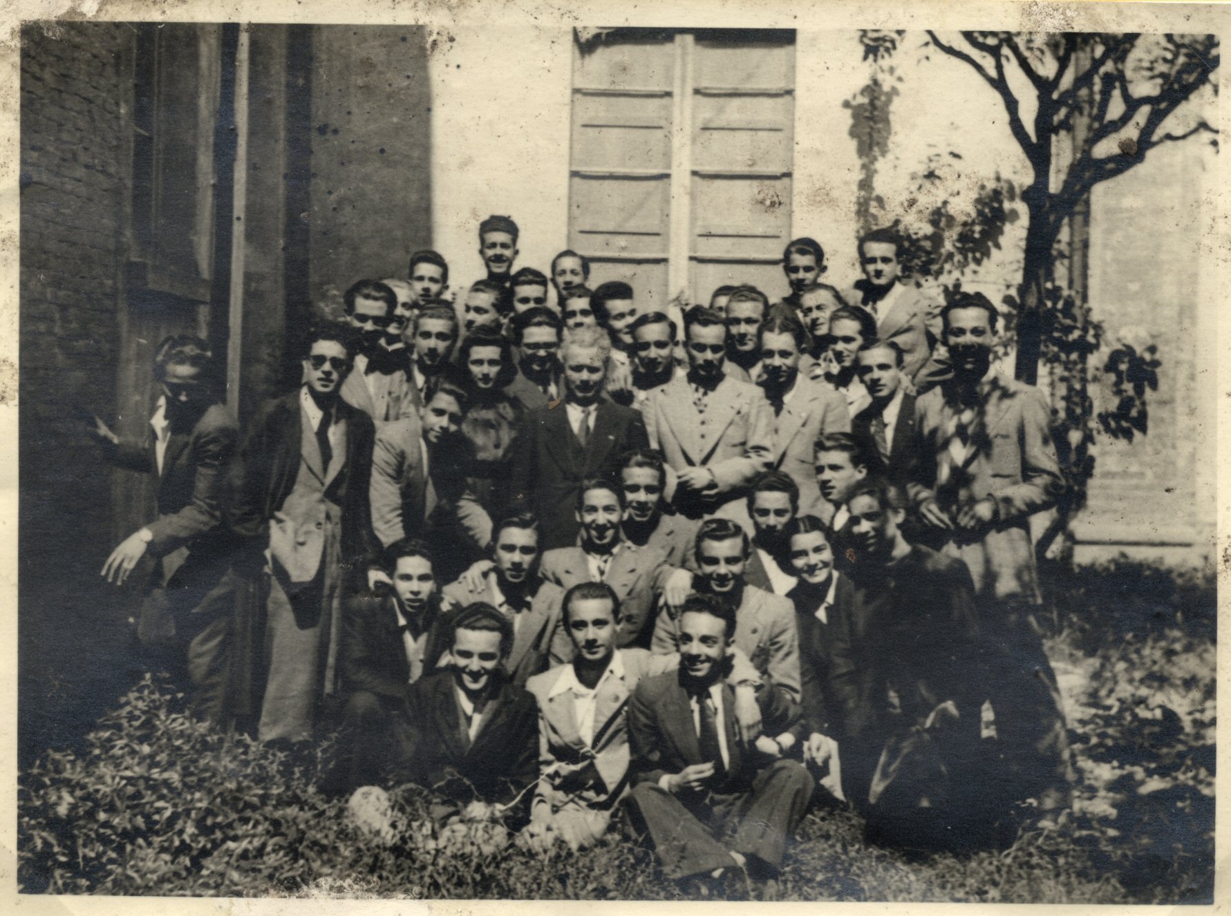 Ragazzini, Sergio Calderoni (sopra il preside), ? (sopra ancora), Marcello Coppari (di traverso),