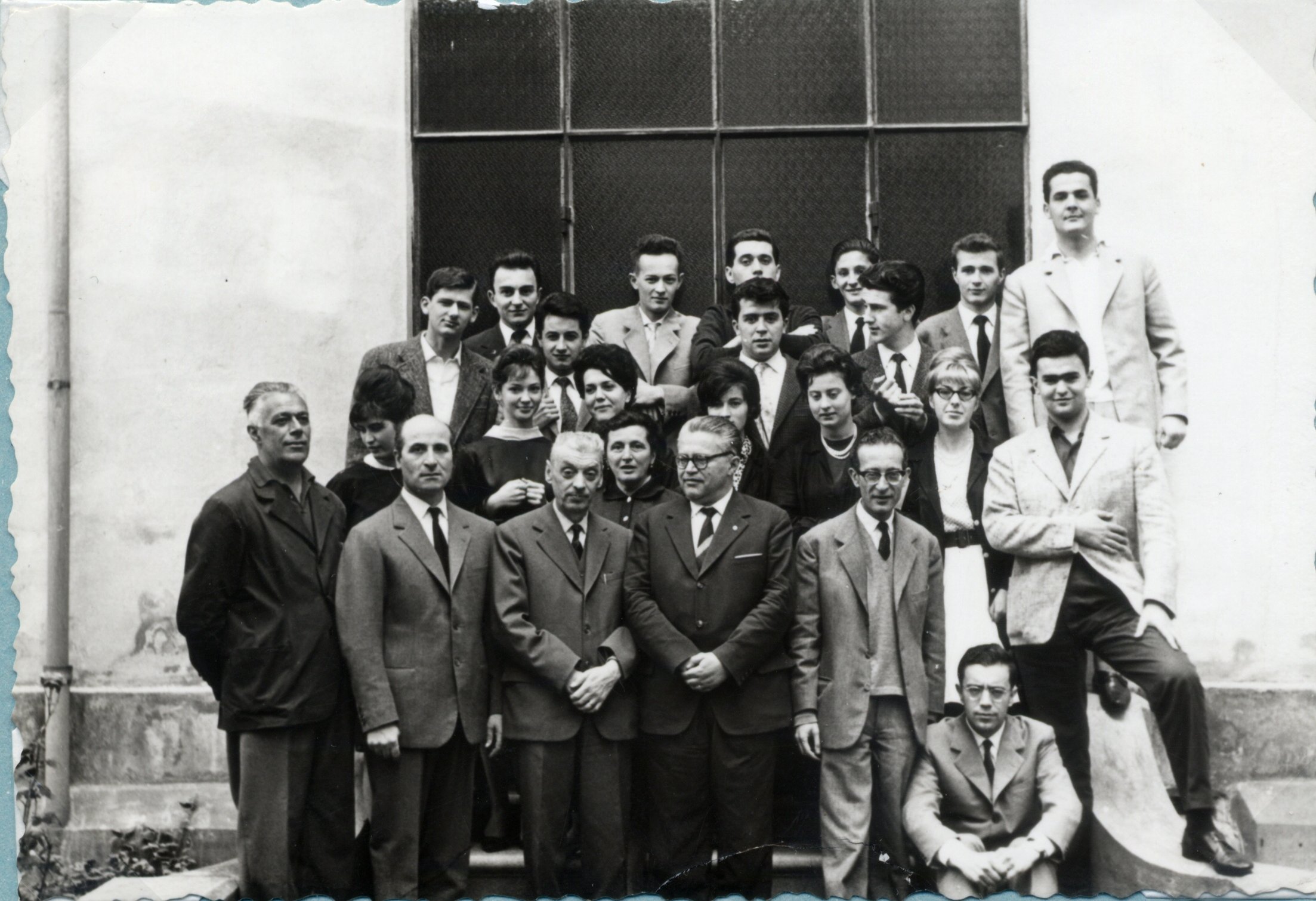 Prof. Mario Ancarani (scienze), prof. Enico Babini (educazione fisica), prof. Alfredo Azzaroni (storia e filosofia), Luigi Dal Monte, Giuseppe Graziani, prof. Francesco Prelati (italiano), Bruno Visentin, il preside prof. Giuseppe Bertoni, Carlo Ferniani (che ha identificato il gruppo), Gabriella Gambi, prof. Giulia Sangiorgi (matematica e fisica), Sandro Visani, Gianfranco Dotti, Giancarlo Celotti, Pierluigi Zucchini, prof. Gualtiero Calboli (lettere classiche), Giancarlo Bassi, Giuseppe Ciani, Teresio Liverani.