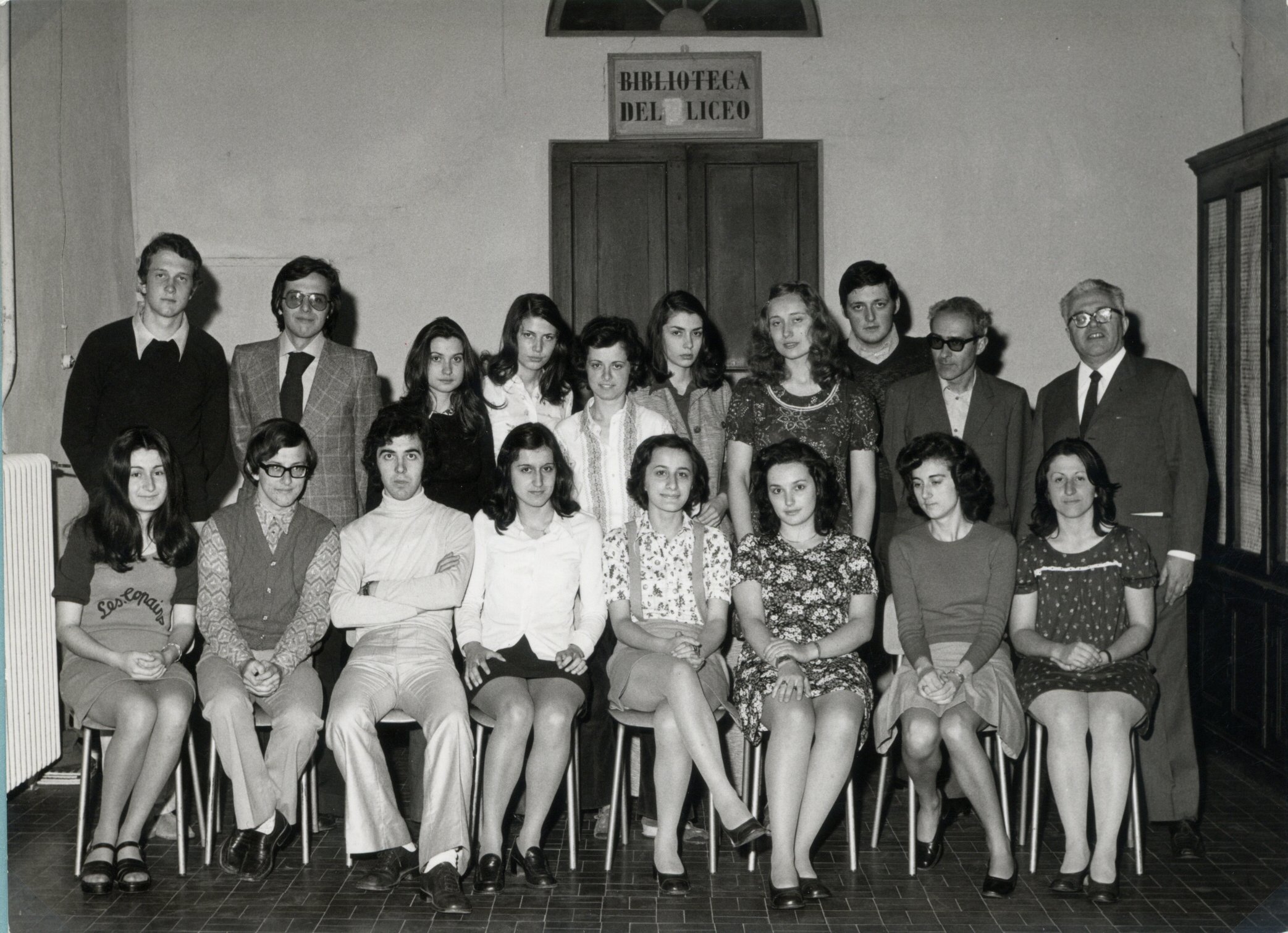 Carlo Antonio Conti, Claudio Morigi, Adele Meluzzi, Isabella Degli Azzi Vitelleschi, Maria Stella Gianessi, Anna Rita Cassani, Antonia Vignoli, Fabio Villa, prof. Giovanni Pini (lettere classiche), il preside prof. Giuseppe Bertoni.