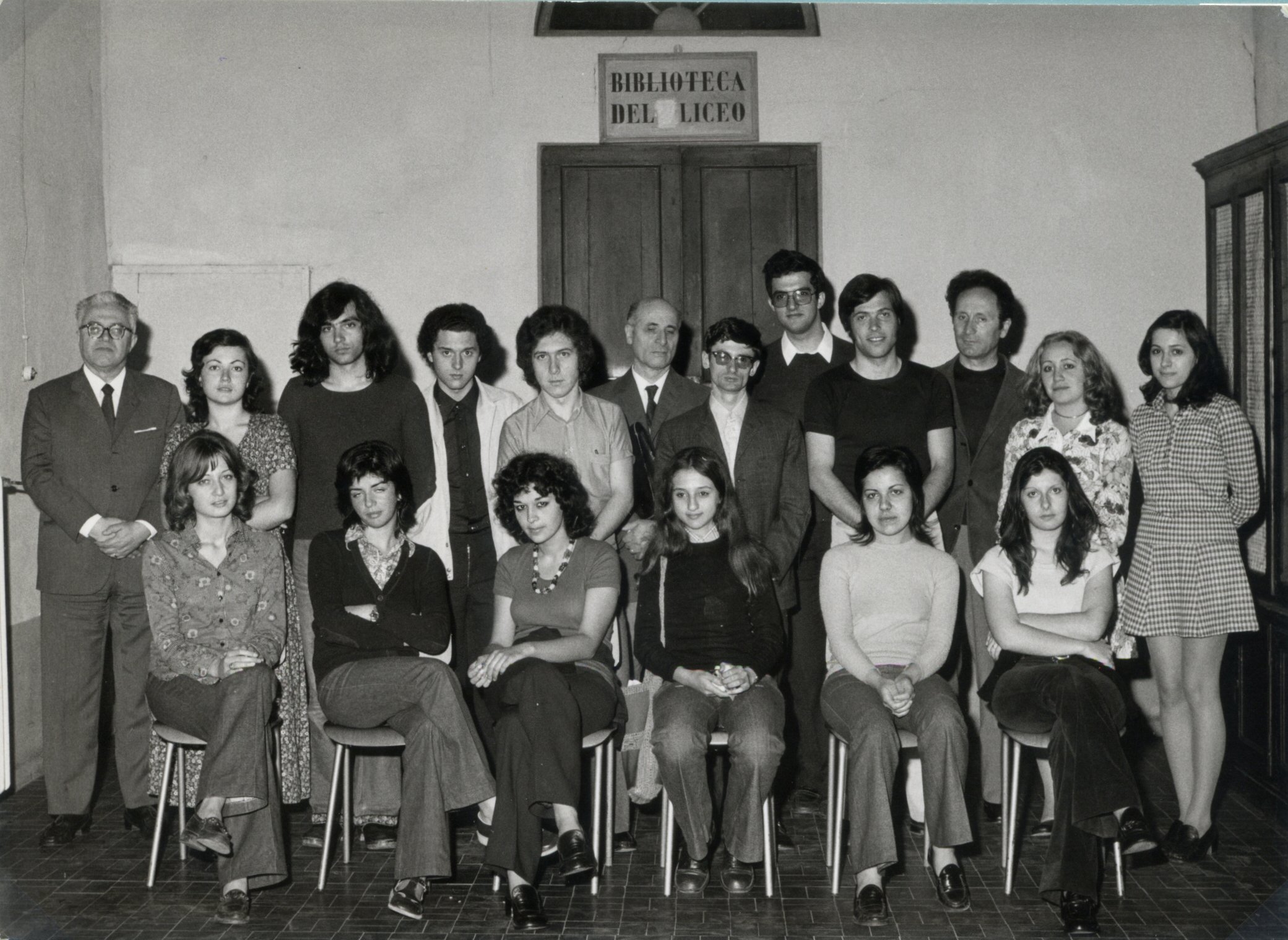 Il preside prof. Giuseppe Bertoni, Gabriella Albieri, Giovanni Rosti, Giampiero Landi, Daniele Donati, prof. Francesco Prelati, Luigi Gatti, Giuseppe Bedronici, ?, prof. Giovanni Renzi, Tiziana Valli, Giuseppina Tedioli.