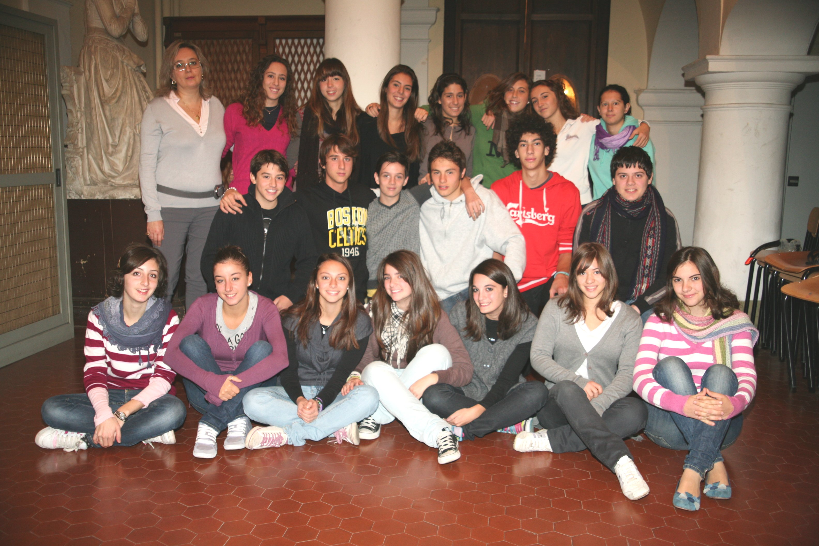 Prof. Francesca Monti, Maria Benedetta Savorani, Giulia Guerra, Margherita Mercatali, Francesca Spadoni, Francesca Valgimigli, Lucia Buccioli, Martina Pini. Seconda fila: Lorenzo Serasini, Giacomo Tronconi, Giacomo Valgimigli, Nicola Liverani, Giacomo Sami, Nicola Tronconi. In basso da sinistra: Ilaria Dalmonte, Jennifer Porisini, Elena Secomandi, Lucia Emiliani, Noemi Ferretti, Sofia Casini, Lucia Malpezzi. Assenti: Alessandro Rosti, Leonardo Roselli, Nicoletta Patrignani. |
