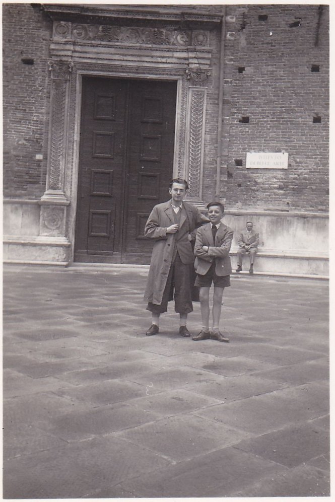 L'unica foto ci mostra gli alunni Berardi e Emiliani davanti al palazzo ducale di Urbino.