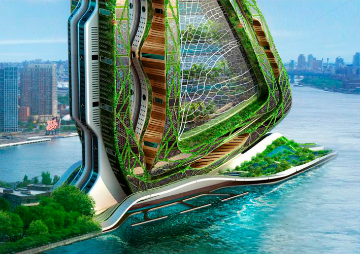 Questo progetto di città verticale si ispira ai modelli della natura: alla leggerezza e resistenza delle ossa degli uccelli; alle flessibilità delle strutture vegetali alla capacità degli organismi di adattarsi. A differenza di un grattacielo la torre bionica avrebbe spazio interno, specchi d’acqua, giardini, niente auto e sarebbe attraversata da luce e aria.